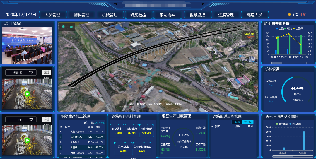 數(shù)字基建現(xiàn)場(chǎng)智慧管控平臺(tái)借助物聯(lián)網(wǎng)、云計(jì)算、大數(shù)據(jù)、VR/AR多媒體、北斗定位、區(qū)塊鏈等技術(shù),以提升工程建設(shè)安全和質(zhì)量為重點(diǎn),以“信息系統(tǒng)服務(wù)于管理提升與效率”為建設(shè)原則,以自有平臺(tái)為技術(shù)架構(gòu)核心,融合BIM+GIS及物聯(lián)網(wǎng)平臺(tái),推進(jìn)基于BIM技術(shù)為支撐的三維設(shè)計(jì)、工程管控,實(shí)現(xiàn)對(duì)設(shè)計(jì)、施工、進(jìn)度、質(zhì)量、安全等各環(huán)節(jié)工作過程數(shù)據(jù)的深度融合和一體化展示;同時(shí)與人員、機(jī)械、車輛、物資、工法、環(huán)境等業(yè)務(wù)相結(jié)合,實(shí)現(xiàn)工程全過程的數(shù)據(jù)自動(dòng)采集、智能分析及智能預(yù)警;通過人機(jī)交互、感知、決策、執(zhí)行和反饋,客觀分析施工場(chǎng)域的進(jìn)度、安全、質(zhì)量及風(fēng)險(xiǎn)等的特征和規(guī)律,將虛擬的業(yè)務(wù)系統(tǒng)與真實(shí)世界的場(chǎng)景深度融合,實(shí)現(xiàn)“施工現(xiàn)場(chǎng)全面感知”、“工程建設(shè)綜合指揮”、“工程BIM全生命周期管控”、“安全教育沉浸體驗(yàn)”的建設(shè)目標(biāo),全面實(shí)現(xiàn)施工現(xiàn)場(chǎng)的管理智慧化、生產(chǎn)智慧化、監(jiān)控智慧化和服務(wù)智慧化。